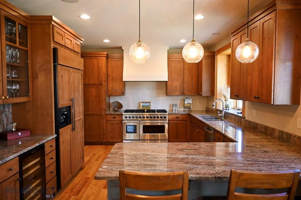 Outstanding opportunity to own this Craftsman-styled, custom-built, Anders Lewendahl home located among only 10 lots overlooking Nash Spring Creek and Tuckerman Park. Nestled at the edge of serene nature trails, this custom home offers the perfect blend of tranquility and convenience. Imagine stepping out your front door and being greeted by winding trails that invite you on morning hikes or peaceful evening strolls. Natural colors, with popping red accents create an inviting entry to this wonderful home. Your main entry is nothing short of spectacular, with its hearty, custom-patterned slate floors, reclaimed timber, and vaulted ceiling draped by natural light and capped by a repurposed historic stained-glass window. Interior spaces emphasize gathering with oversized entry, living room, dining room, and kitchen areas, perfect for entertaining and family gathering. A spacious kitchen offers custom cabinetry and is anchored by a large eight-burner Viking, dual-fuel range and custom hood installed in 2025. The everyday dining area spills out onto a wonderful eastside patio and secluded backyard overlooking Nash Spring Creek, perfect for summertime barbeques in a private setting. It is thoughtfully arranged with the primary bedroom on the main floor and three bedrooms and a family room on the second floor. There are a total of five bedrooms, two full baths, one 3/4 bath, and one-half bath, this lovingly appointed home can easily accommodate your family, with room for visiting guests as well. A variety of natural stone adorns this spectacular home - from Teakwood marble to Portuguese Gascon Blue limestone and deep-hued purple Brazilian slate and Italian Mirage granite - all of which must be seen to be fully appreciated. The exterior features craftsman-styled finishes of cedar shake, and board-and-batten finish surrounded by mature landscaping and flower beds. An oversized two car garage with integrated custom-built shelving and a half bathroom are perfect for a busy family during any season. Located on the southern edge of Bozeman city limits, with beautiful unobstructed south-facing views over the silos of Goldenstein’s farm, enjoy country-styled openness in remarkably close proximity to schools, within minutes, you can reach the vibrant downtown area, making it easy to enjoy local dining, shopping, and entertainment. This is a not-to-be-missed opportunity to make this warm, inviting, and gorgeous home yours! It’s truly the best of both worlds.